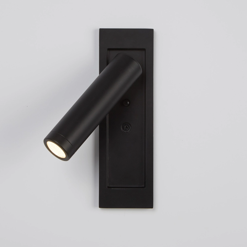 Sleek black LED reading wall light with a modern design, providing focused and energy-efficient illumination—perfect for bedrooms, study areas, and hotels.